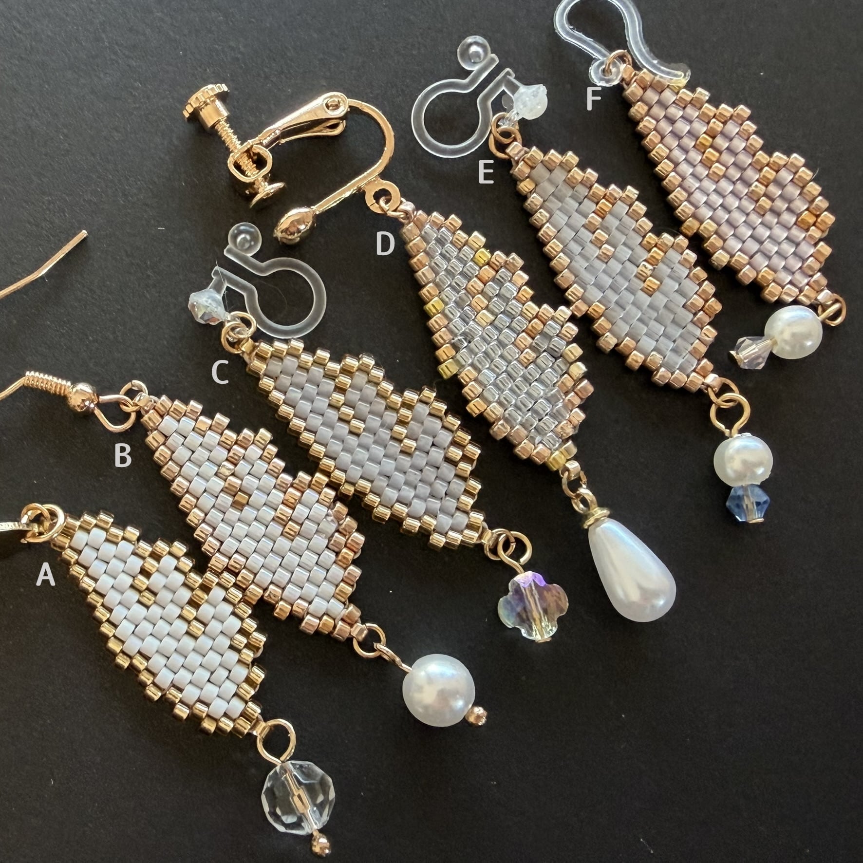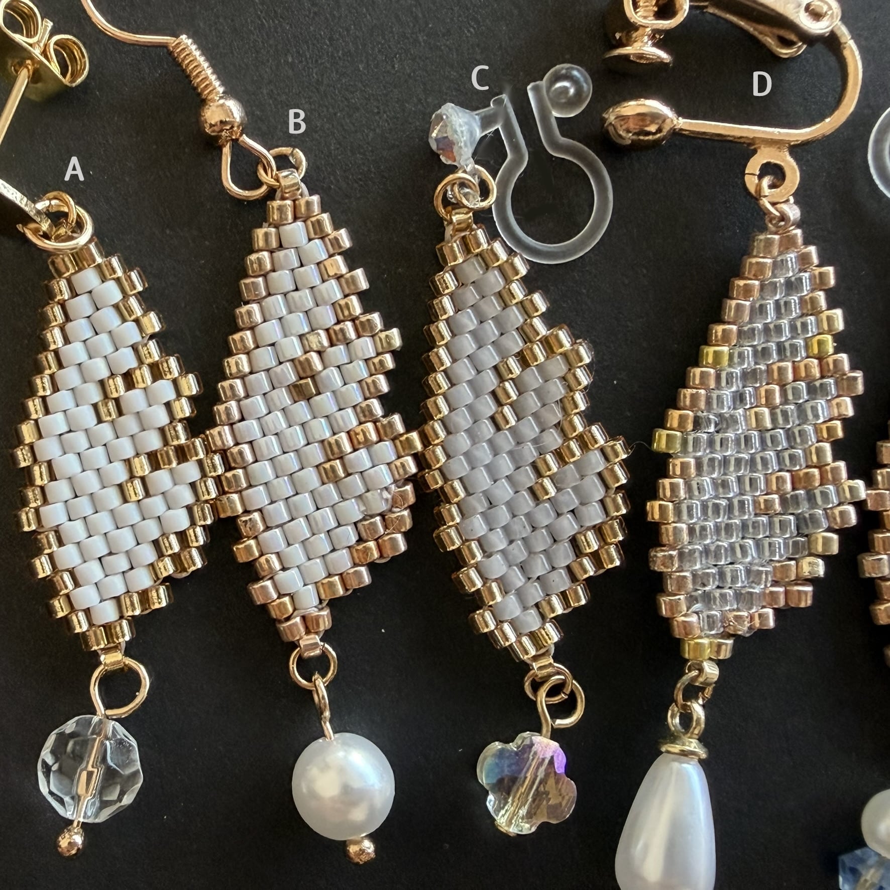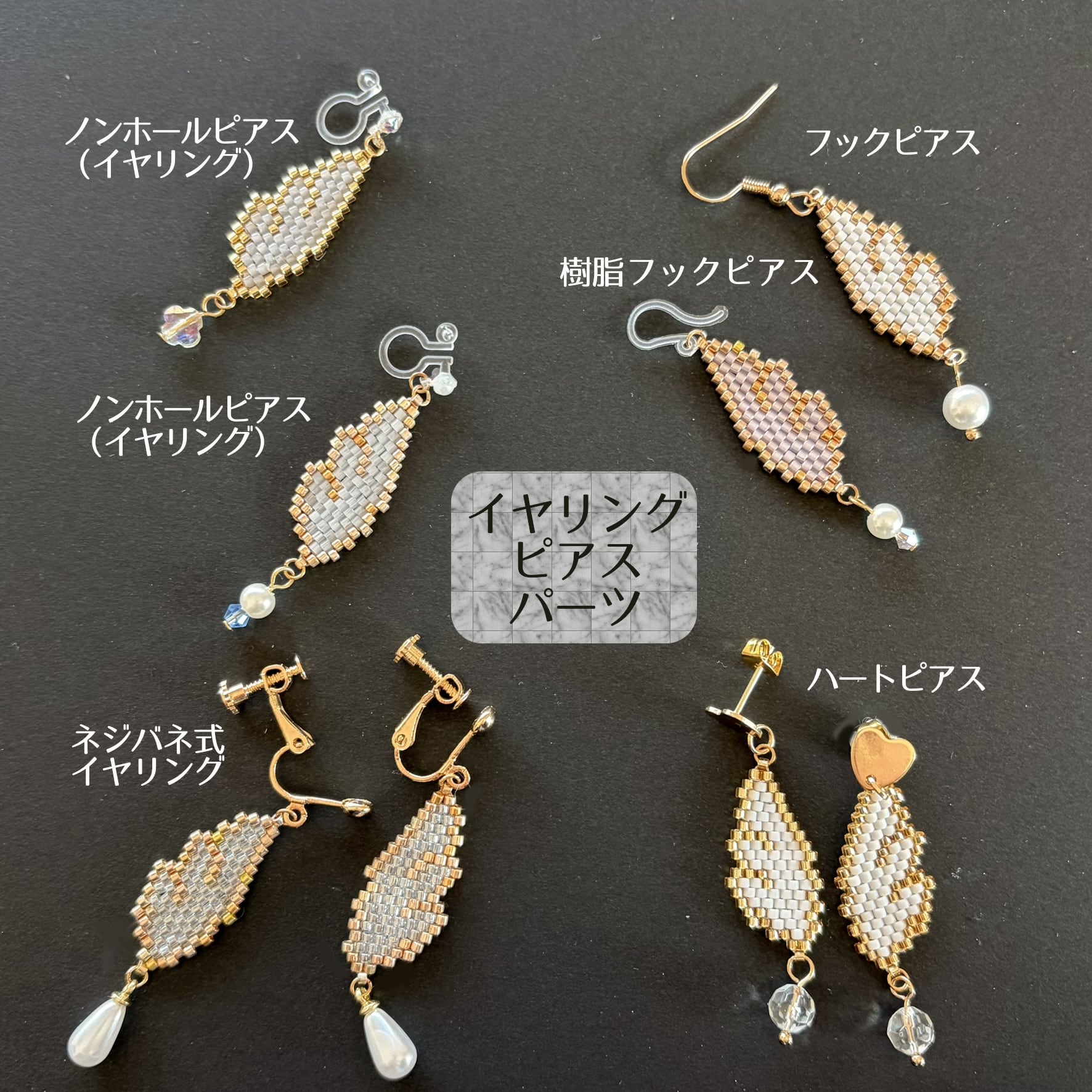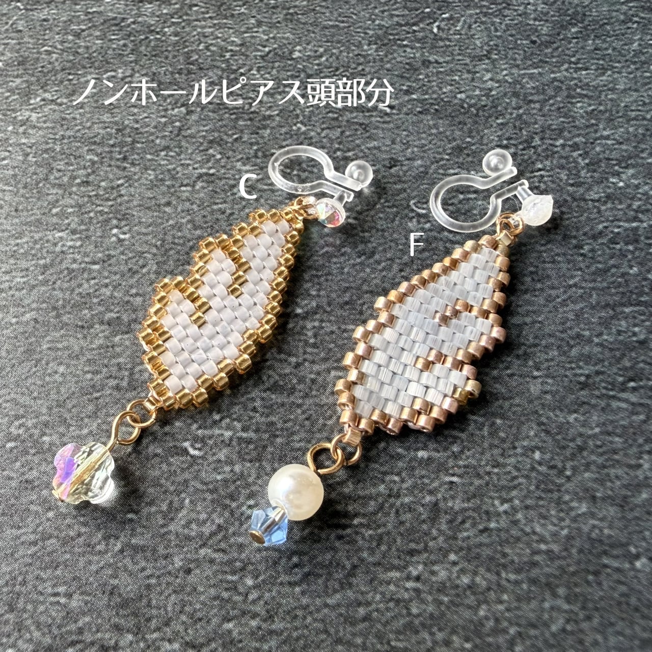 D)白:クリア、ネジバネ式イヤリング(金属アレルギー対応)