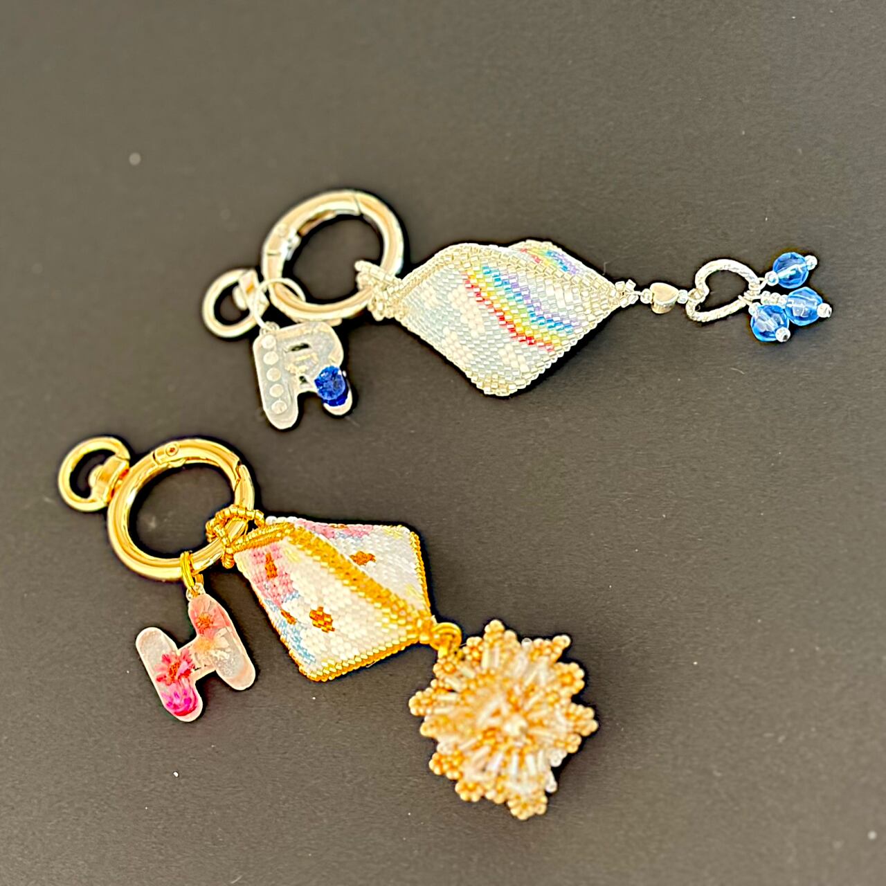 ★お持ちのネックレスに通すことでペンダントヘッドとしての使い方もできます。軽量なビーズチェーンネックレスを有料(1,000円)ですがお付けすることもできます。チャームに合わせた色合いをご提案します。